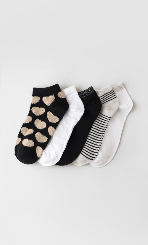 Paquete 5 calcetines cortos, color beige, con diferentes estampados gráficos.