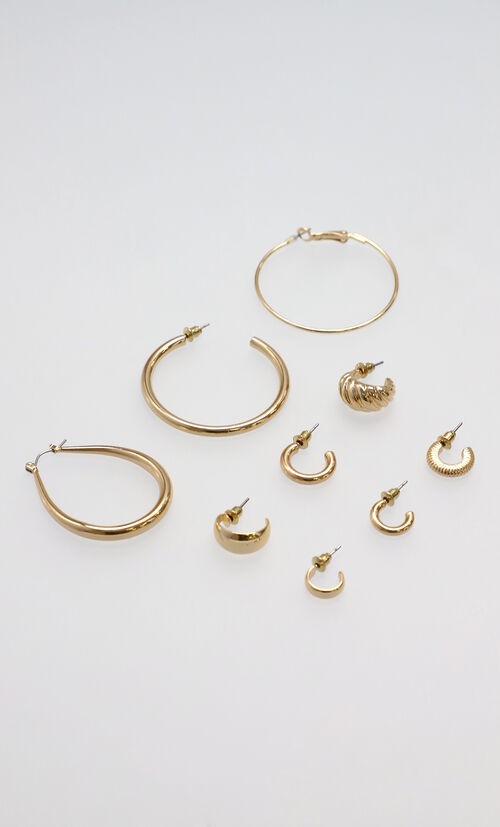Set 9 aretes de aros, color amarillo dorado.